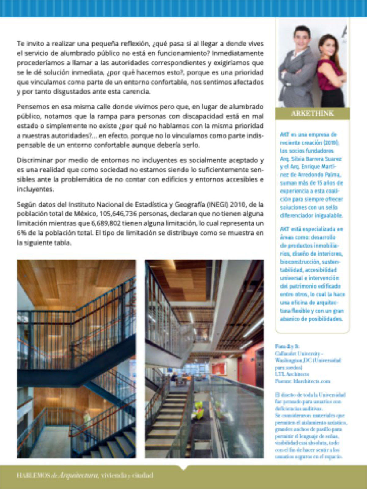 Pensemos en esa misma calle donde vivimos pero que, en lugar de alumbrado público, notamos que la rampa para personas con discapacidad está en mal estado o simplemente no existe ¿por qué no hablamos con la misma prioridad a nuestras autoridades?... en efecto, porque no lo vinculamos como parte indis- pensable de un entorno confortable aunque debería serlo.